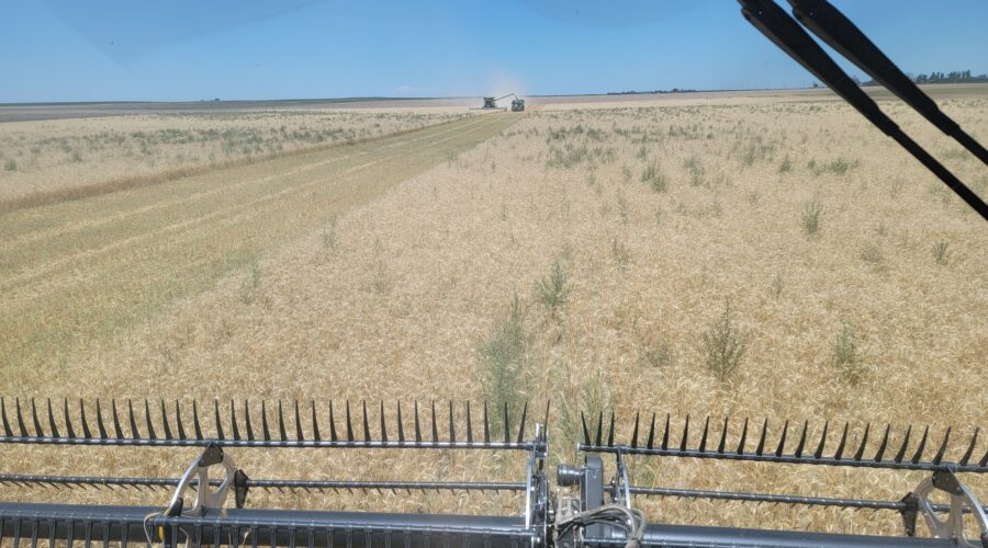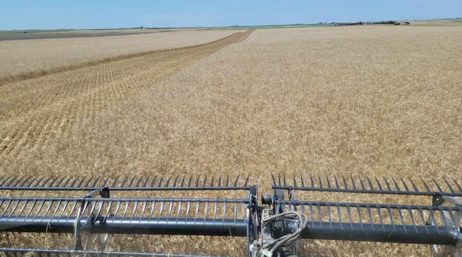Western Nebraska—We’ve had 10 consecutive days of harvesting out west. The yields have been 30 to 60 bushels per acre. The test weights have been 58 to 62 pounds per bushel and the protein 12 to 14%. We have seen some sawfly damage and weeds.