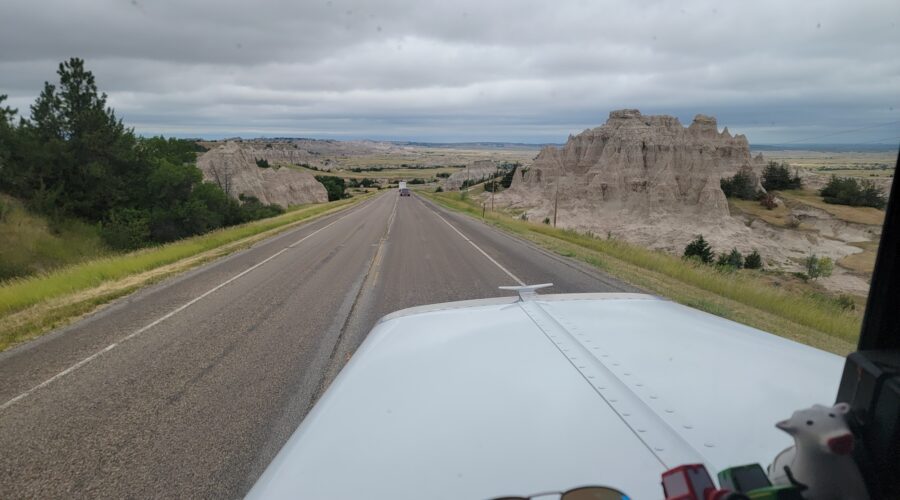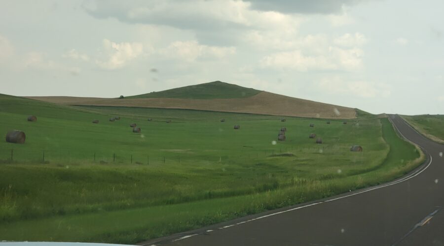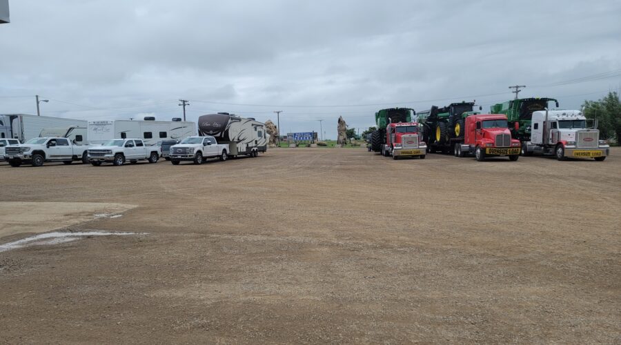 Southwestern North Dakota – It’s now August 8 and we just arrived up north. We had a good trip. It was cloudy and 70 degrees so that was great for traveling conditions. I’m glad to be here. It’s such pretty country up here and North Dakota is my very favorite on wheat harvest.