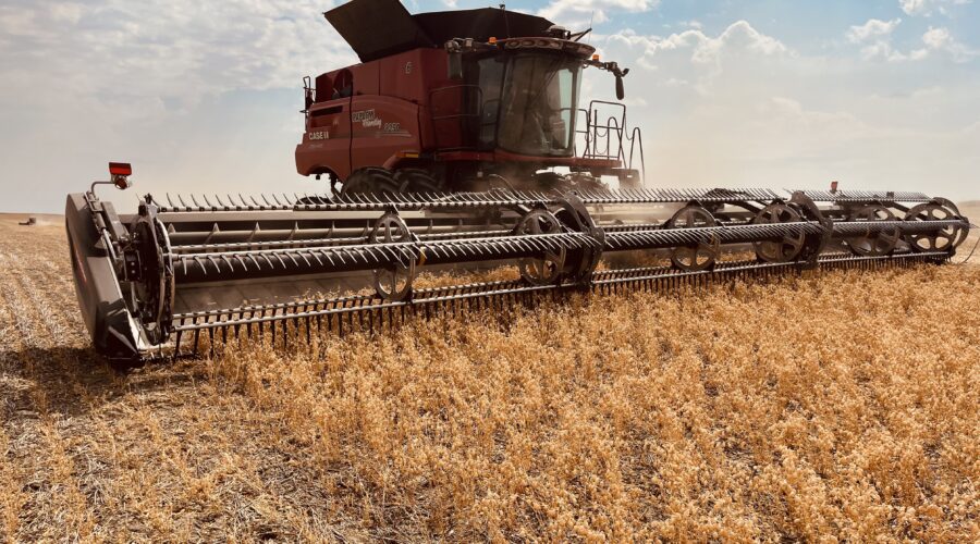 I visited our crew working on chickpeas for lunch while they were east of Highwood and chickpeas were averaging just about 30 bushels per acre. The cutting seemed to be going well, and the field looked nice and smooth where they cut.