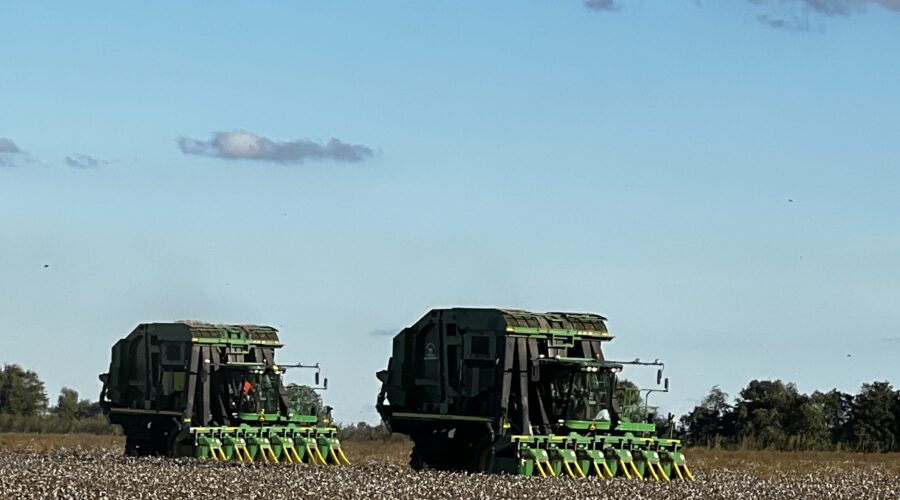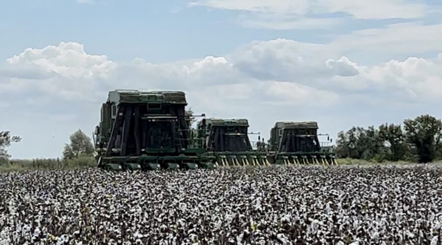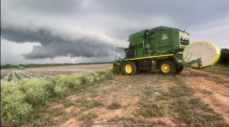 Southeast Texas—Hi y’all. We’re picking cotton. All four machines are running. This is a fantastic day. The field we are currently harvesting is picking fairly poor. It’s yielding about 0.8 bales an acre, which is OK for this year. We usually like to pick high yielding cotton, but that is not the case. The drought took its toll on most of Texas’ dryland crops again this year. However, the weather has been ideal these past couple of days for picking cotton.