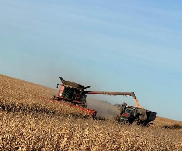 While the crew was working in other places we left one machine home to start on our own corn. Since we had some employees head home already, Karlie and myself helped out in the field for the past three weeks. I ran the cart while Karlie was in the combine and bringing trucks to our bin. Bentley and Kyler even got in on the action on weekends. Bentley took over the grain cart and Kyler helped at the bin. Bentley even tried to stay home the following week so he could be in the cart.