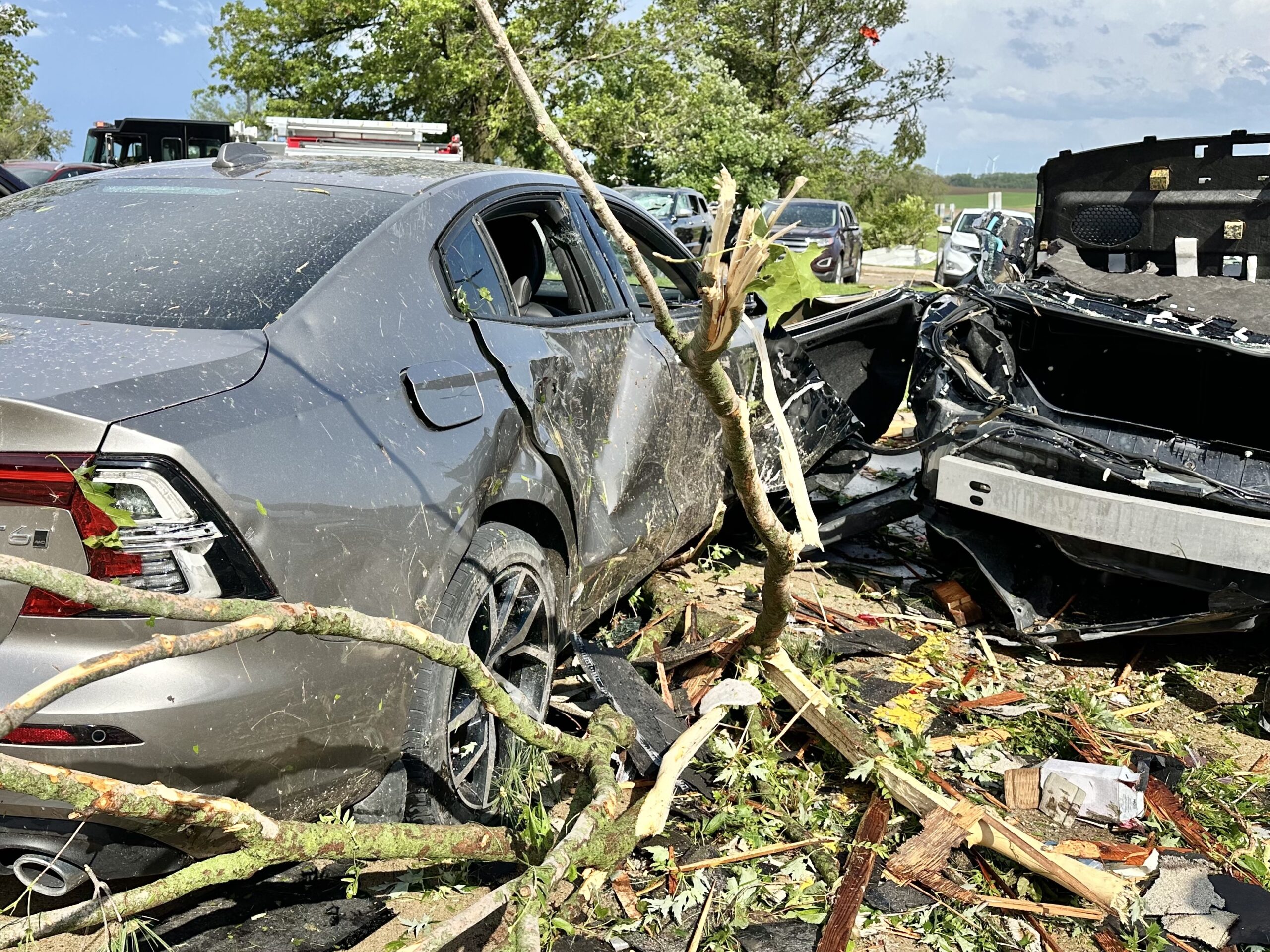 With farm work (mostly) done, the crew has been laser focused on Oklahoma wheat harvest preparations. Like I said, there’s always a whirlwind of activity on the farm, but on May 21 that phrase took on a devastating meaning for my local community. Early a.m. thunderstorms were followed up by a second round of severe weather at noon. With a third system approaching around 3 p.m., storm fatigue was setting in for a lot of us, but severe thunderstorm warnings escalated to tornado warnings, and the meteorologist on TV started showing radar debris images that defied logic, encompassing the entire town of Greenfield. While most of our crew was hunkered down on the farm 7 miles east of town, Vernelle had taken cover in the storm shelter of Greenfield’s hospital.