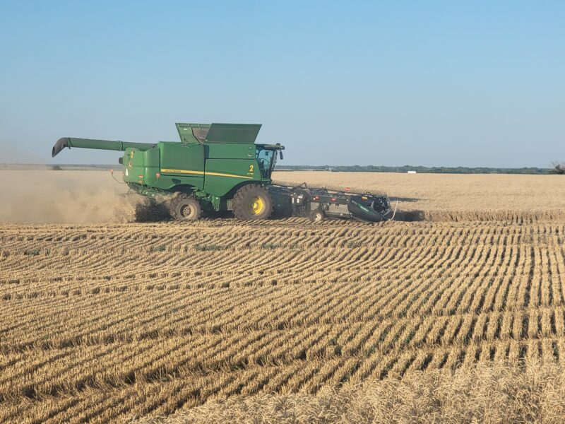 Breakdowns stress me out. I had the John Deere Harvest Support in my field three days in a row. Thank goodness they are here to help and keep us going! We appreciate them so much! I had two hydraulic oil leaks due to smashed O-rings, and late one evening my rotor belt broke. I’ve never had that happen before.