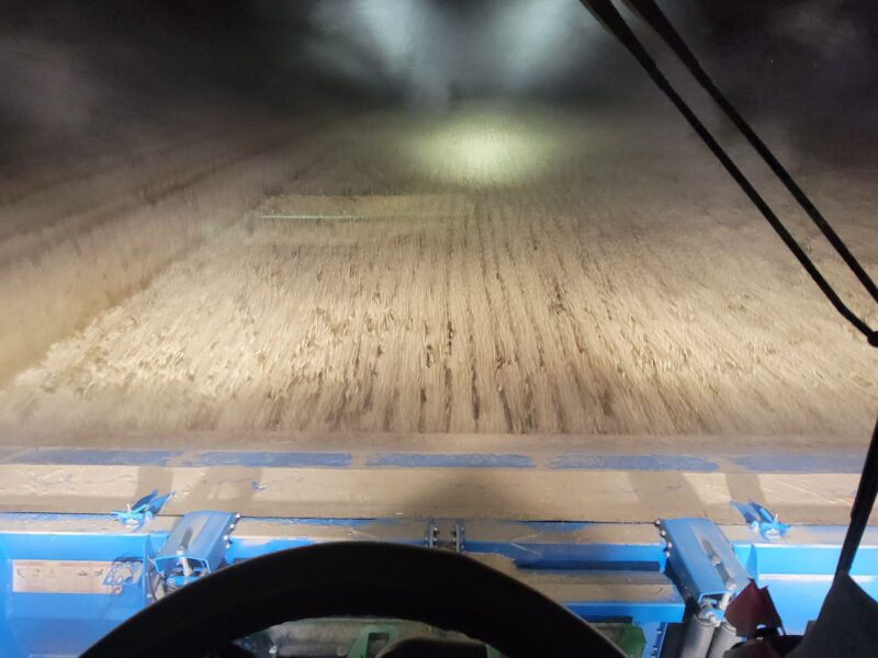 Harvesting late at night in western Kansas on June 23. This wheat is yielding very well.