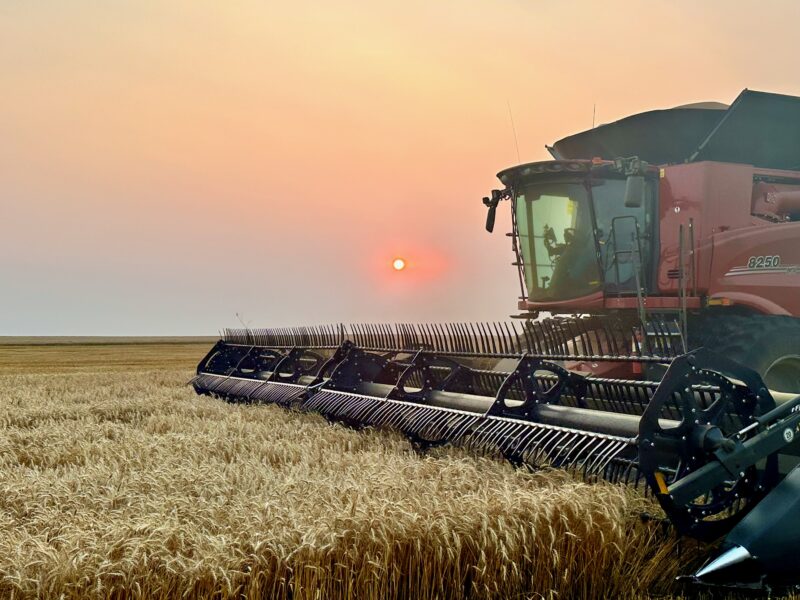 Foggy mornings, frequent rains and ultra-high humidity have made it seem like the deck has been stacked against us. The wet weather, paired with thick, dense straw, has trapped a large amount of humidity below the wheat canopy. Cool temperatures and light winds haven’t helped dry things out very quickly. The weather also has reminded us of one of those back-room poker games. I’m talking about the kind you see in the movies, dimly lit with stale cigar smoke hanging in the air. Virtually every day, wildfire smoke has transformed the sun into a bursting ball of red. A heavy haze has begrimed the sky, dulling a landscape usually bursting with vibrant colors.