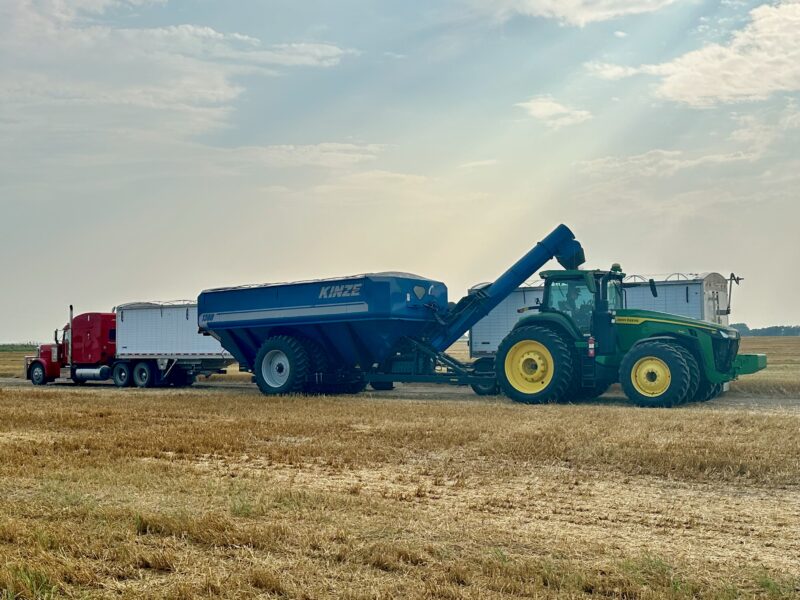 What we hadn’t bet on was the monster yield numbers we’ve been seeing. We knew it looked like a good crop when we arrived, but no one expected this good. We hear many fields are making more than 75 bushels per acres, but we’ve harvested a few even better. All that dense straw slowing us down is also keeping our grain tanks full and the grain cart busy as we harvest mile-long rows. The yield monitor is consistently showing values I’ve never seen before, and once all the scale tickets are added up we are almost guaranteed fields average over 100 bushels per acre. I’m not much of a gambler, but if I were to place a bet on setting our personal record for highest field yield in more than 40 years of harvesting, regardless of location, I’d take my pile of chips and go all in on this year’s crop.