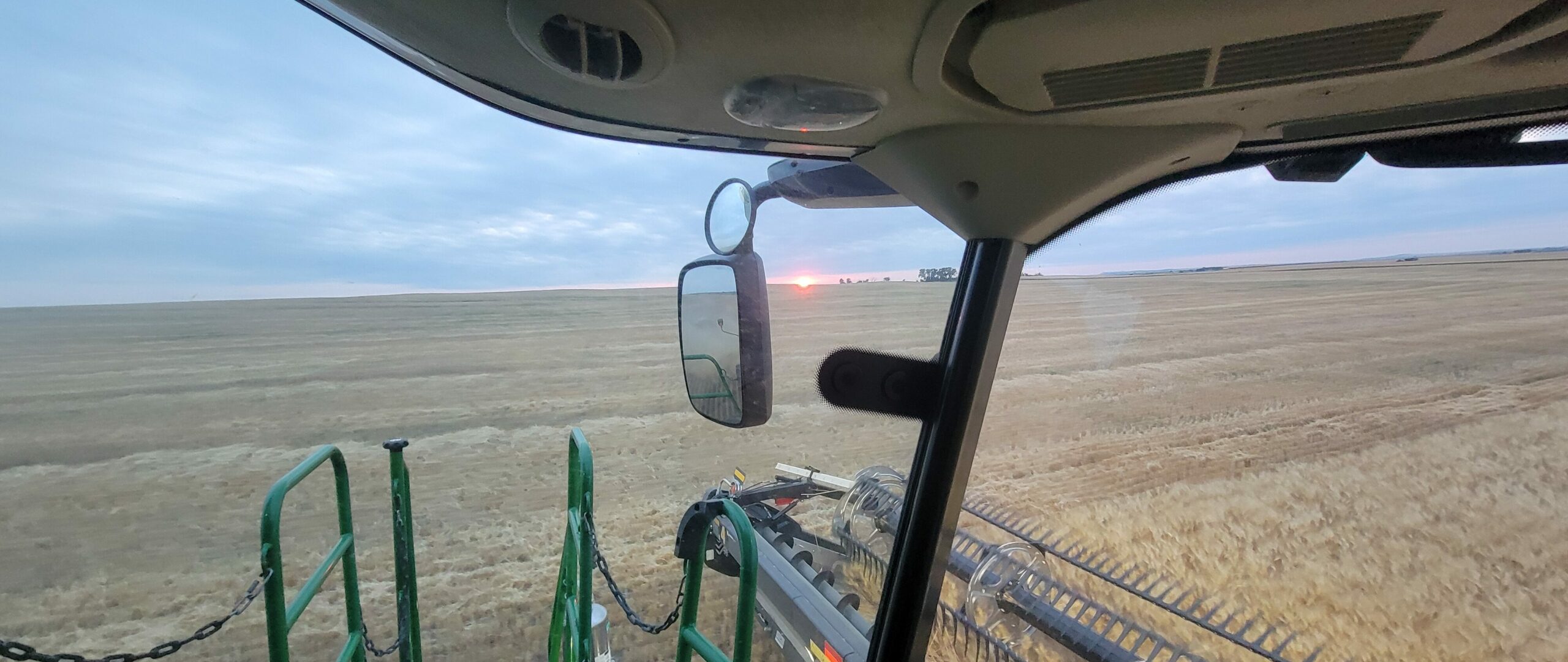 North Dakota — It’s now August 5, and we are cutting durum and spring wheat. The durum is such a beautiful grain with its rich amber color. It’s been yielding in the 60s and 70s. Our weather has been hot and dry, but just yesterday it was a beautiful, breezy 70-degree day. It was a nice change from the high heat.