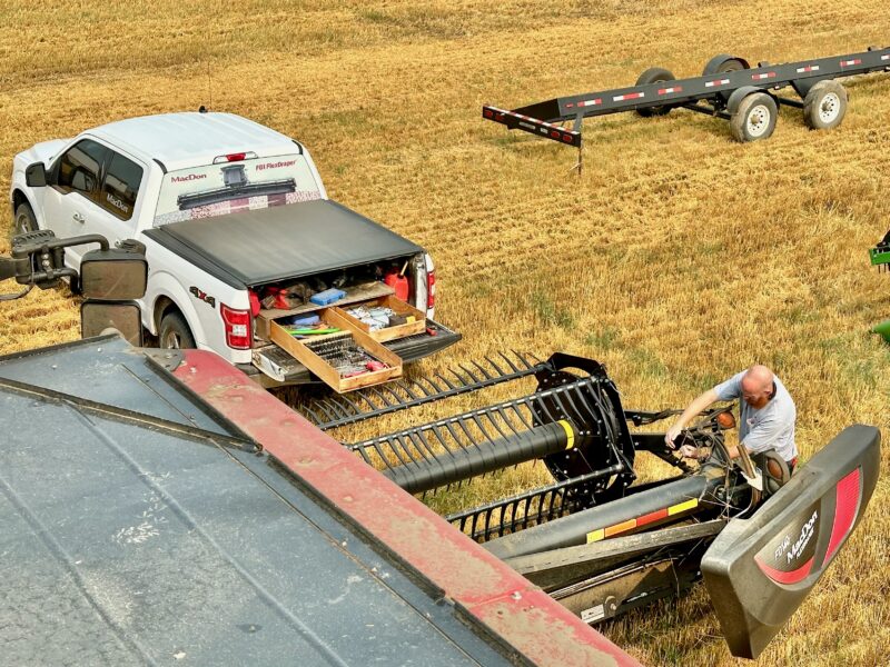 Late starts allow for morning maintenance, and we thank MacDon for helping fix an oil leak in the field.