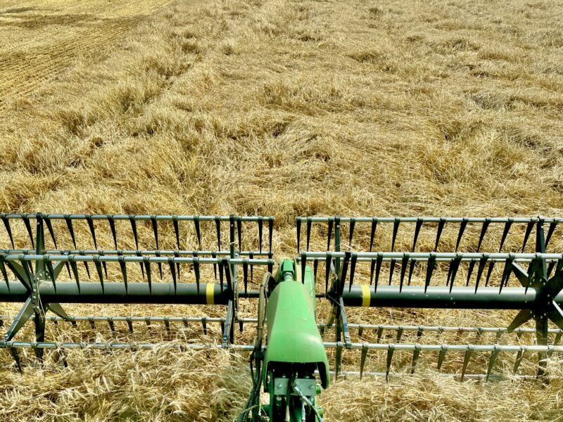 Down, tangled straw means slow going for the machines, but it results in recored-setting yields this year.