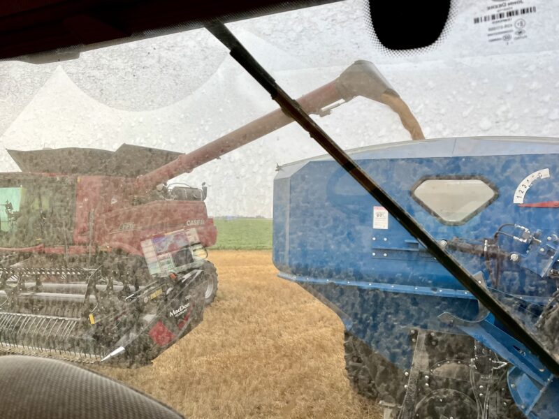 Vernelle documents the final grain cart dump seconds before the drizzle turned to downpour.