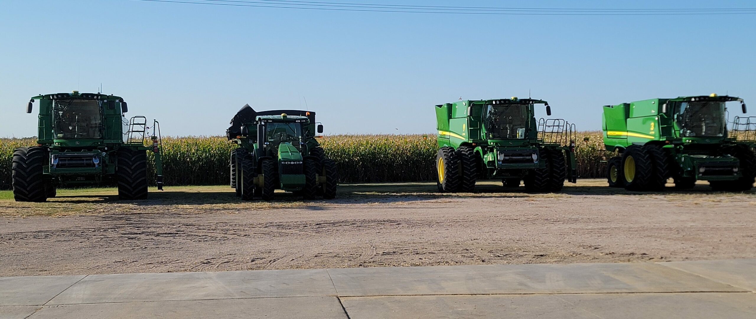 We have six combines here and three in Kansas picking corn. We have one more day of heat and wind, and then our forecast cools off with highs in the 70s and 80s. It is dry here. There are chances of rain later in the week. The corn and soybeans are turning from green to gold, and the weather is cooling down for now, so goodbye summer and hello fall! I love this time of year!