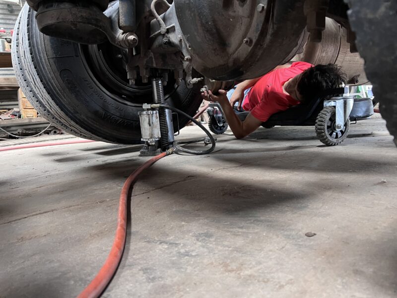 Bishop, Texas — Hi y’all! We started this week with getting our low boy ready to haul our cotton pickers. We changed a few tires and airbags. We had to work on some wires because those pesky little pests like to chew on them.