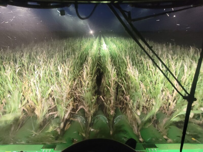 Holdrege, Nebraska — I have been staying busy picking high-moisture corn this past week. It’s high-yielding and around 28 to 31 percent moisture. It’s standing well and is green and healthy, too.