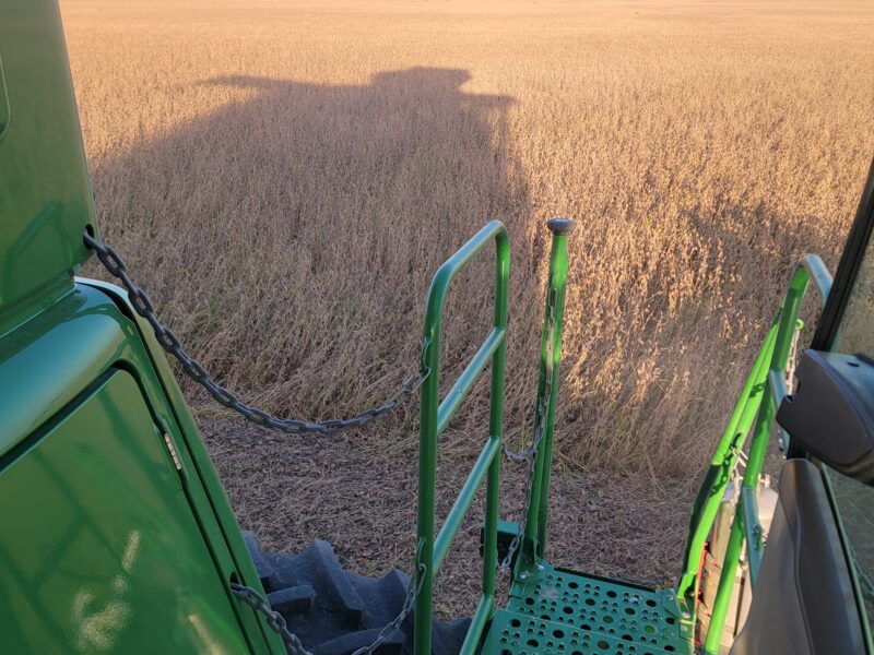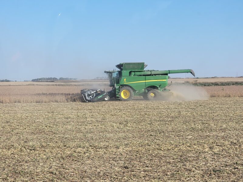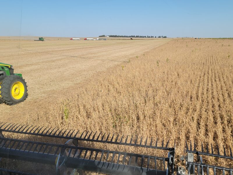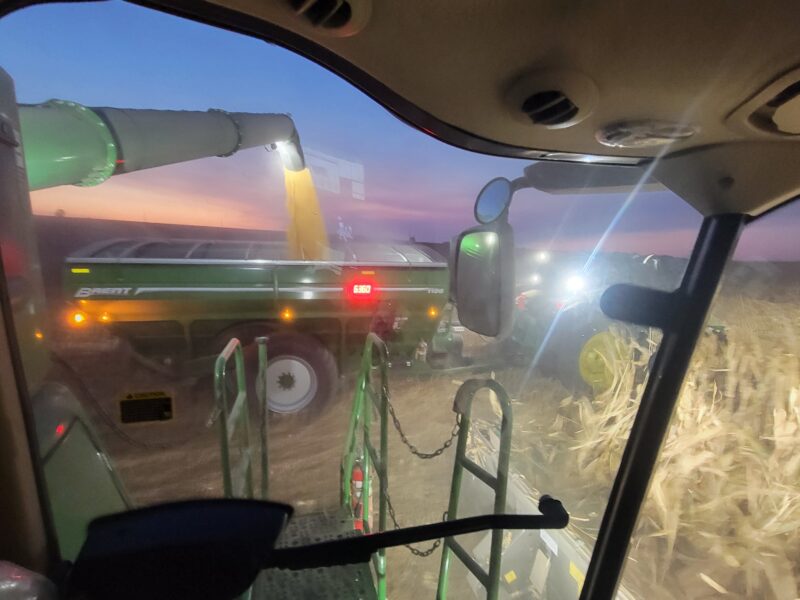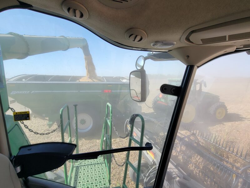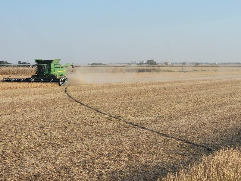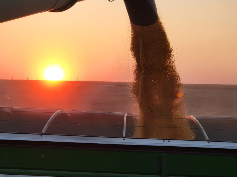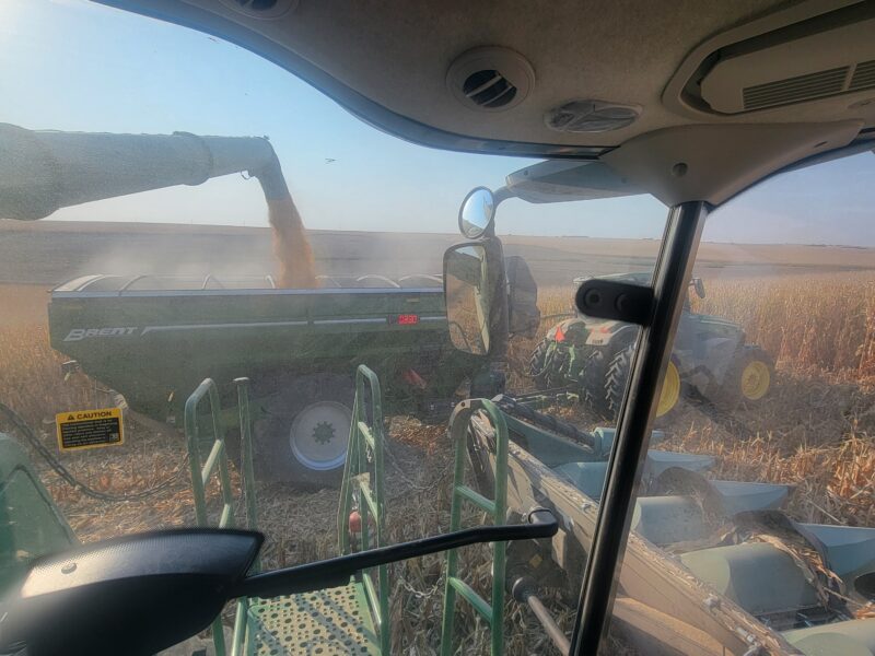 I’ve been harvesting soybeans and corn. The soybeans have been yielding well and cutting nicely. The corn has been high-yielding and dry. Loads have been testing at 14 to 16 percent moisture. The days have been consistently busy, and we have a full crew. We have six combines here and three in Kansas harvesting corn and milo. Best of luck to everyone working in the fields and helping to feed America!