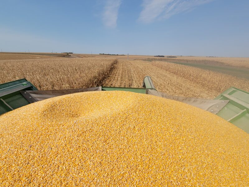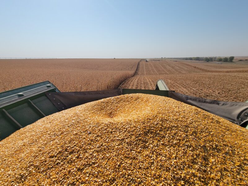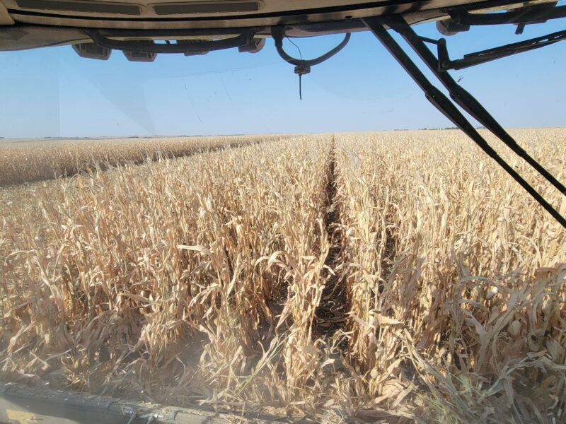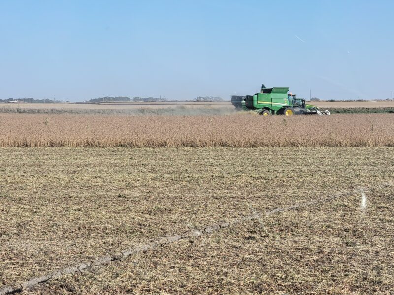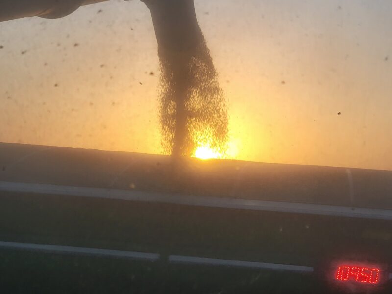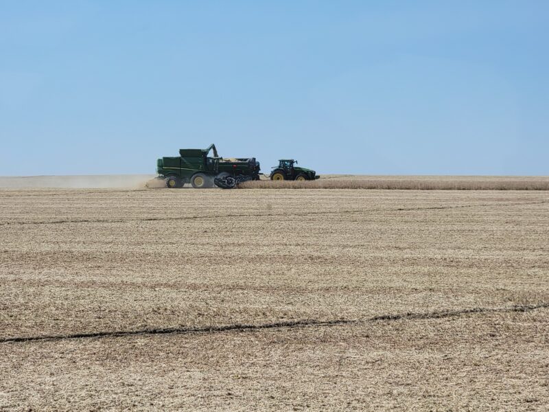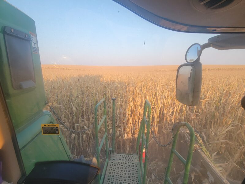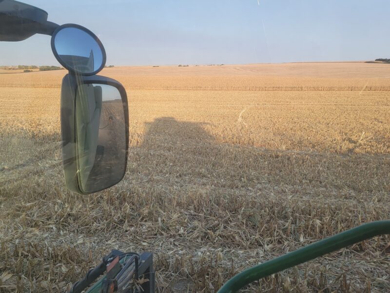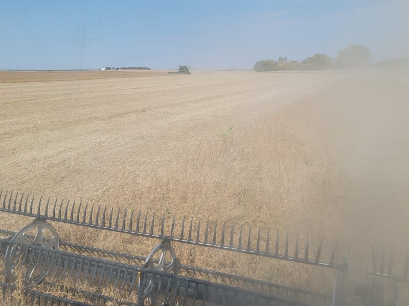 I’ve been harvesting soybeans and corn. The soybeans have been yielding well and cutting nicely. The corn has been high-yielding and dry. Loads have been testing at 14 to 16 percent moisture. The days have been consistently busy, and we have a full crew. We have six combines here and three in Kansas harvesting corn and milo. Best of luck to everyone working in the fields and helping to feed America!
