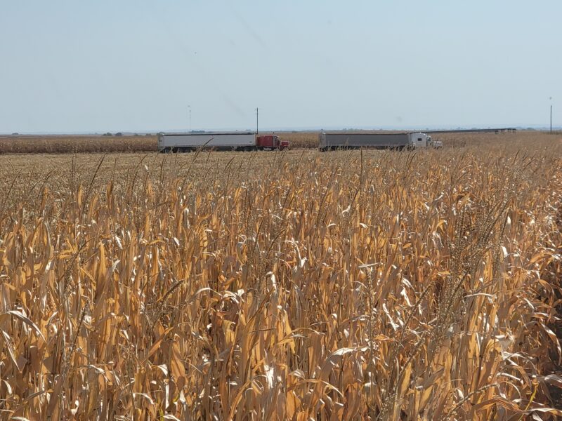 Holdrege, Nebraska — Harvest progress is continuing, but with an October heatwave. It’s been hot (80s and 90s) and very dry, and there’s still no rain in the forecast. However, it might finally freeze tonight, and daily temperatures are expected to be cooler, in the 50s and 60s. It is so dry and dusty here.