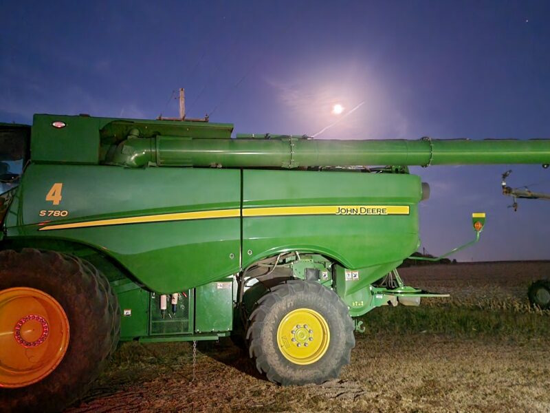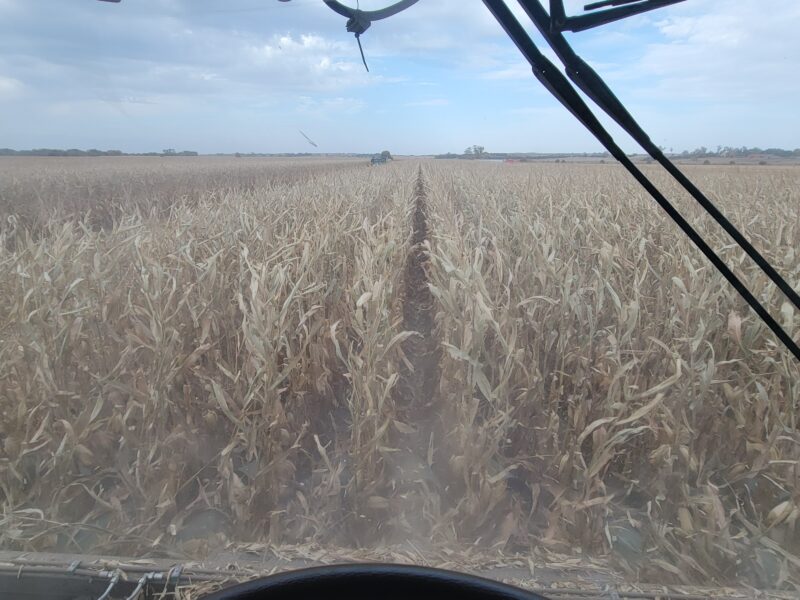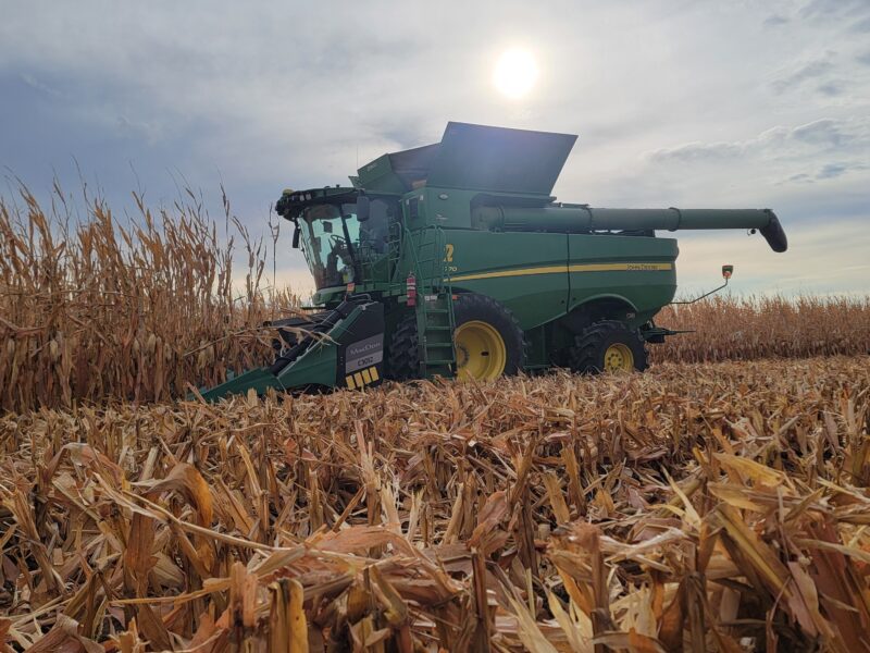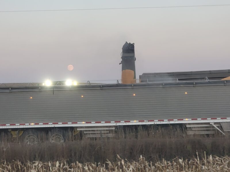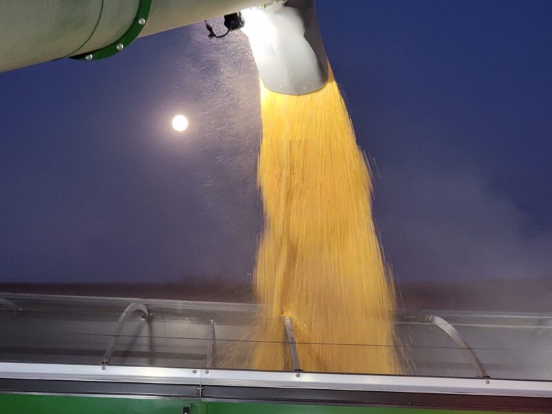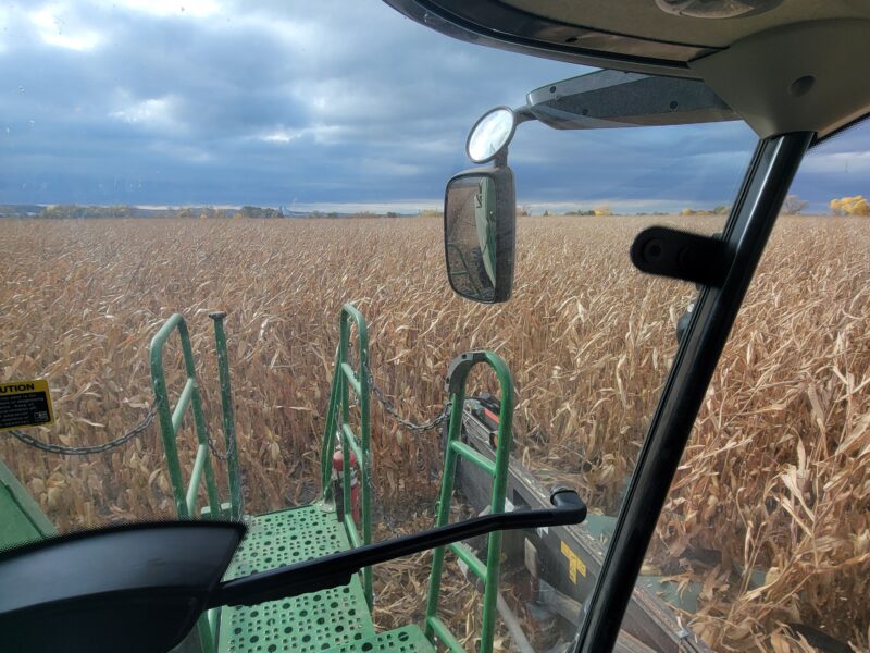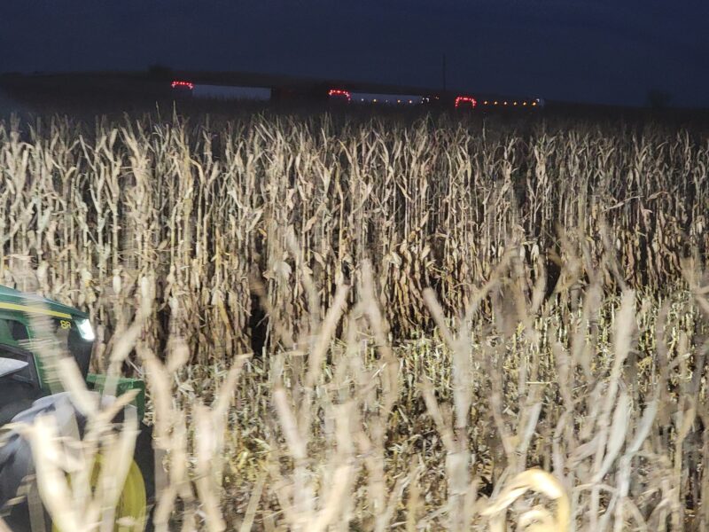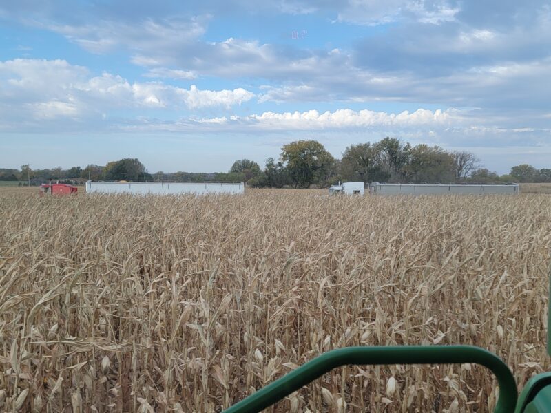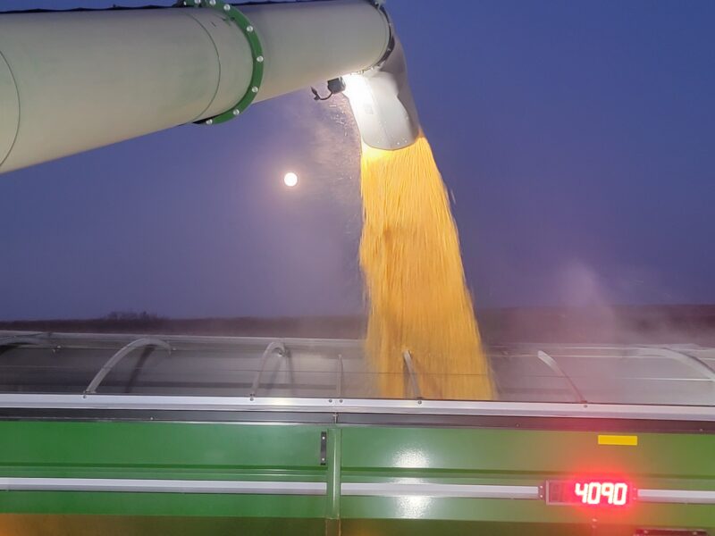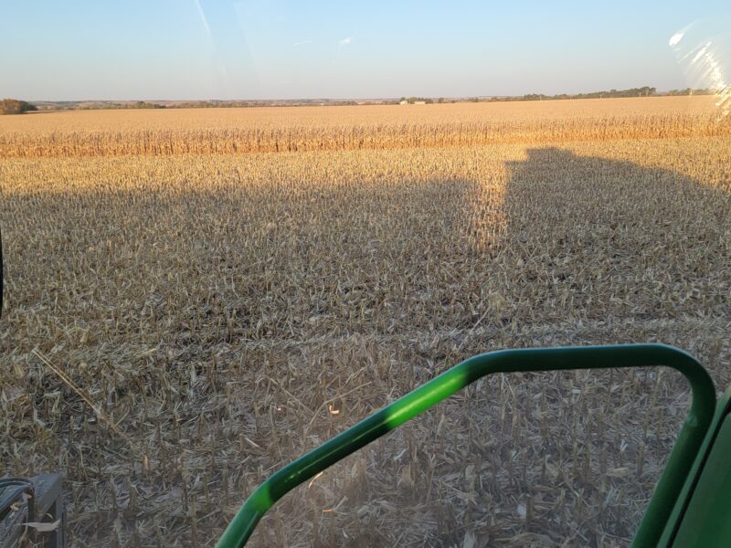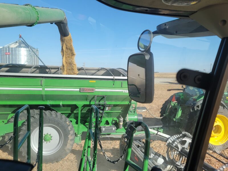 Nebraska — We recently finished up the soybeans. They yielded well even though they’d been hailed on this summer. We are back on corn now. We got moved up to our last stop on harvest for the year. The corn is high-yielding and up to 61 pounds per bushel test weight.