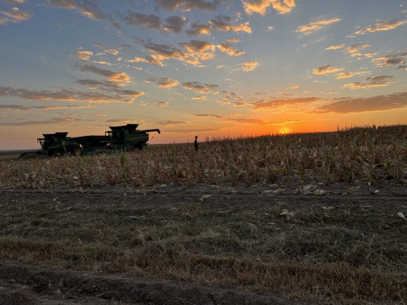 Once we wrapped up with milo, we changed out concaves, again, and moved back on to the corn. Our boys much prefer corn over milo, especially during service time. They don’t especially like blowing off the combines covered in milo dust. Baby powder is their best friend when blowing off the machines.
