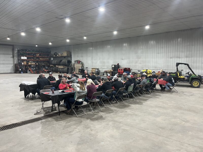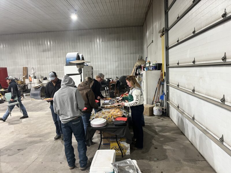 This last Friday, our local Case IH dealer, Titan Machinery, held an appreciation supper for our crew at Gary’s shop. The company catered in the most delicious barbecue, beans, corn, mac and cookies. Our whole crew made it down, and we enjoyed lots of conversation and catching up. Our crew around home worked hard to clean the shop up. We also used this opportunity with everyone home to pass out Paplow Harvesting hoodies. They are usually a treat for the crew at the end of the season, and they are well earned.