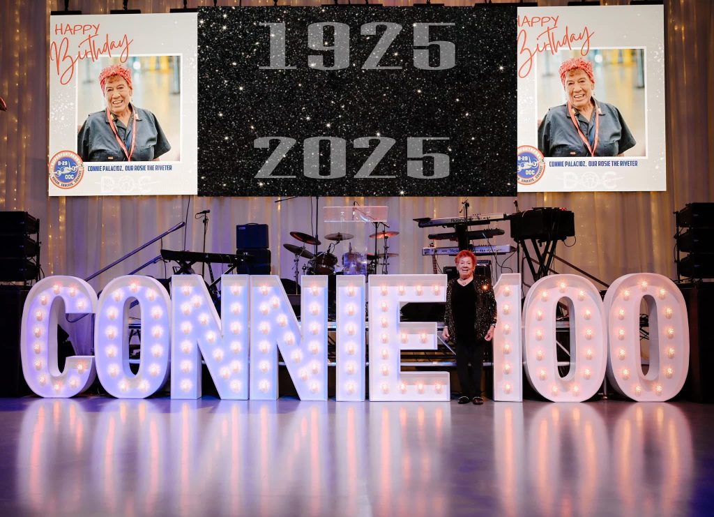 An iconic party—100 years in the making—took center stage in the life of Connie Palacioz, a Newton, Kansas, mother, grandmother, great grandmother and Rosie the Riveter.