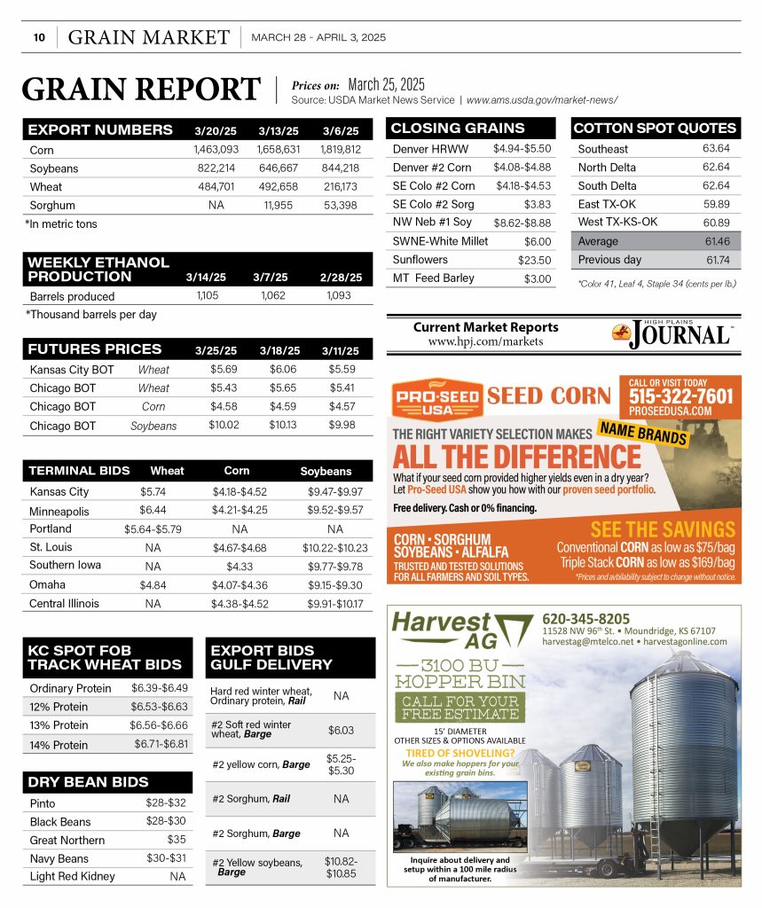 Corn, Dry Beans, Grain Markets, Grain Report, Grain Sorghum, Soybeans, Wheat Grain Report March 25 2025 By Heather Noll March 27, 2025 Listen Now 0:00 TAGS: corn, dry beans, grain market, grain markets, grain report, markets, sorghum, soybeans, wheat Related Articles Grain Report February 27 2024 Grain Report March 5 2024 Grain Report March 15 2024 Grain Report March 19 2024