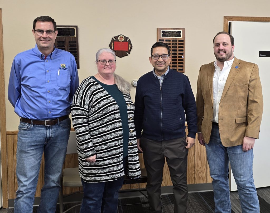(From left) John Meuret, J.E. Meuret Grain Company; Jennifer Carr, Pitman Family Farms; Bijesh Maharjan, UNL associate professor and Extension specialist; and Robert Ellis, American Farmland Trust, at the conclusion of the Nebraska Soil Health School held in Brunswick on Feb. 20-21. (Courtesy photo.)
