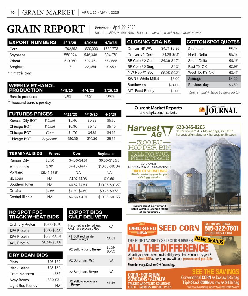 Corn, Dry Beans, Grain Markets, Grain Report, Grain Sorghum, Soybeans, Wheat Grain Report April 22 2025 By Heather Noll April 24, 2025 Listen Now 0:00 TAGS: corn, dry beans, grain market, grain markets, grain report, markets, sorghum, soybeans, wheat Related Articles Grain Report February 27 2024 Grain Report March 5 2024 Grain Report March 15 2024 Grain Report March 19 2024