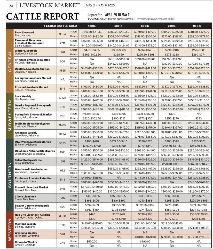 Auction Barns, Beef, Cattle Report, Cow Calf, Dairy, Feeder, Livestock, Seedstock, Stocker Cattle Markets May 2 By Tracy Shinogle May 01, 2025 Listen Now 0:00 Cattle Markets May 2 TAGS: Related Articles Cattle Report July 26th Cattle Report Aug. 2nd Cattle Report Sept. 20th Cattle Report June 21st