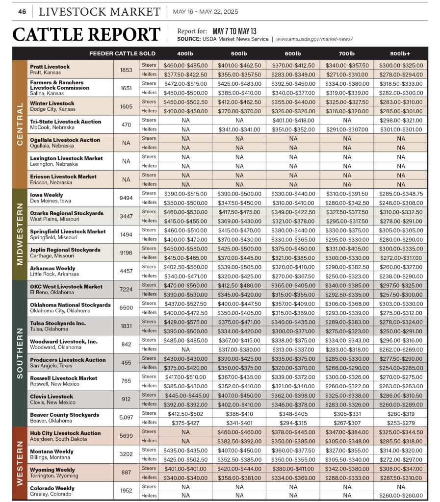 Beef, Cattle Report, Cow Calf, Feeder, Seedstock, Stocker Cattle Markets: May 14, 2025 By Tracy Shinogle May 14, 2025 Listen Now 0:00 TAGS: beef, cattle, central, livestock, midwestern, southern, western Related Articles Free virtual stockmanship event Nov. 7 Winter family purchases Salina’s Farmers and Ranchers High Plains cattle sales report New implant guidelines impacting reimplantation were announced