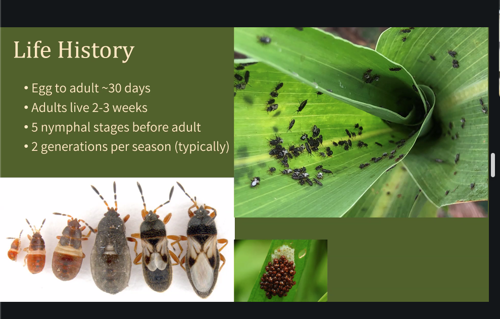 From egg to adult, it takes about 30 days depending on temperature, and once they reach adulthood, they live two to three weeks and have five nymphal stages. Since they are similar to other species, Butler said its important producers know what they’re scouting in the field.