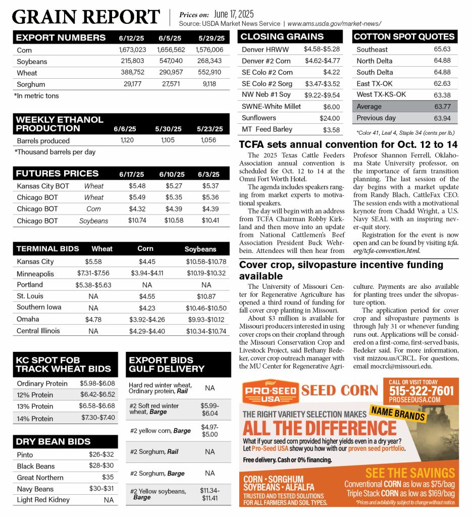 Corn, Dry Beans, Grain Markets, Grain Report, Grain Sorghum, Soybeans, Wheat Grain Report June 17 2025 By Heather Noll June 18, 2025 Listen Now 0:00 TAGS: Related Articles Grain Report February 6, 2024 Grain Report January 2 2024 Grain Report January 23 2024 Grain Report February 13 2024