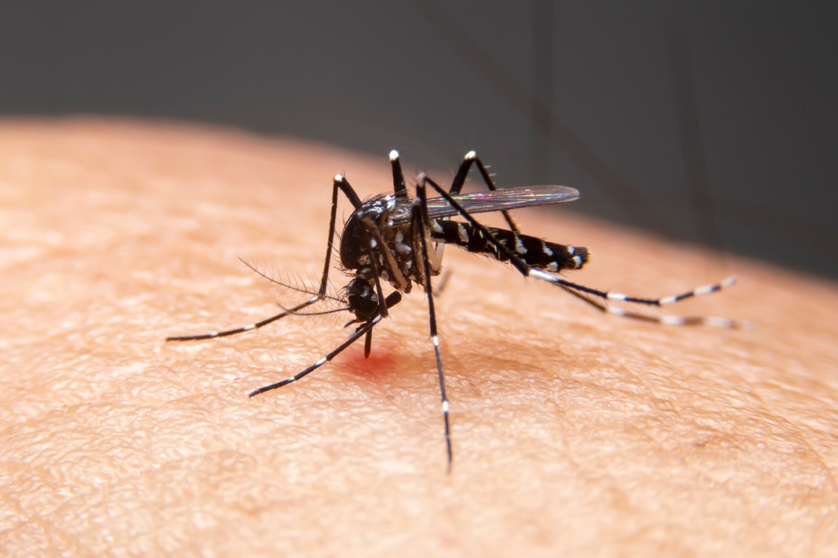 PHOTO: Striped mosquito eating blood on human skin. (Adobe Stock │ #306185088 – witsawat)