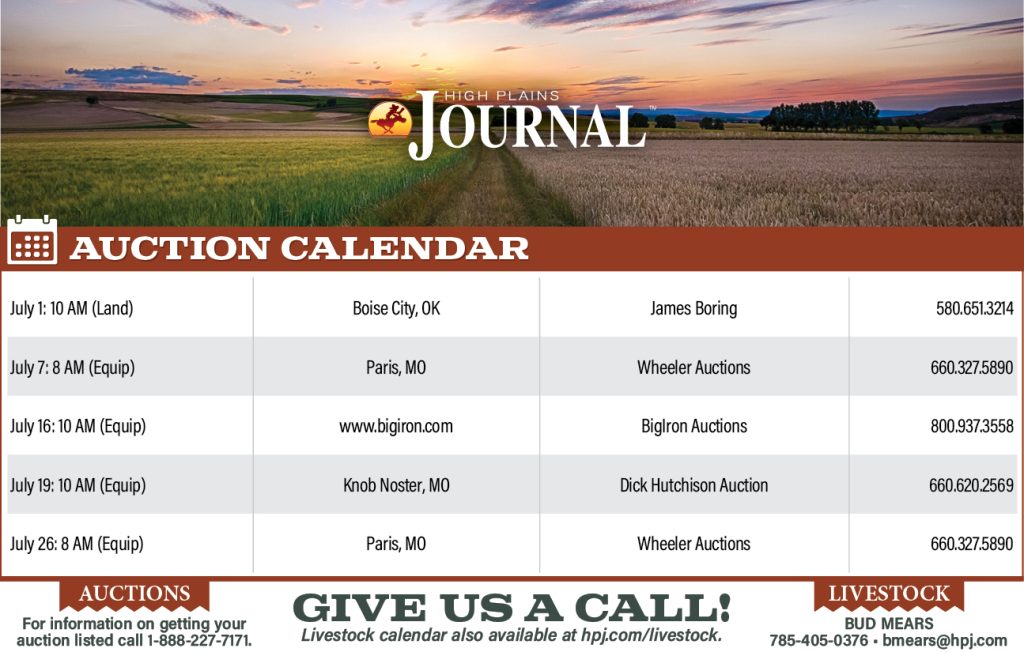 Auction Calendar, Equipment Auction Calendar July 4 2025 By Heather Noll July 02, 2025 Listen Now 0:00 TAGS: auction calendar, Auctions, BigIron Auctions, brazle auction, dick hutchinson auction, Farmers National, griffin real estate, hall & hall, kaddatz equipment, larry johnston agency, merit auctions, purple wave auctions, scott auction, steffes auctioneers Related Articles Auction Calendar February 16 2024 Auction Calendar March 1 2024 Auction Calendar March 8 2024 Auction Calendar March 15 2024