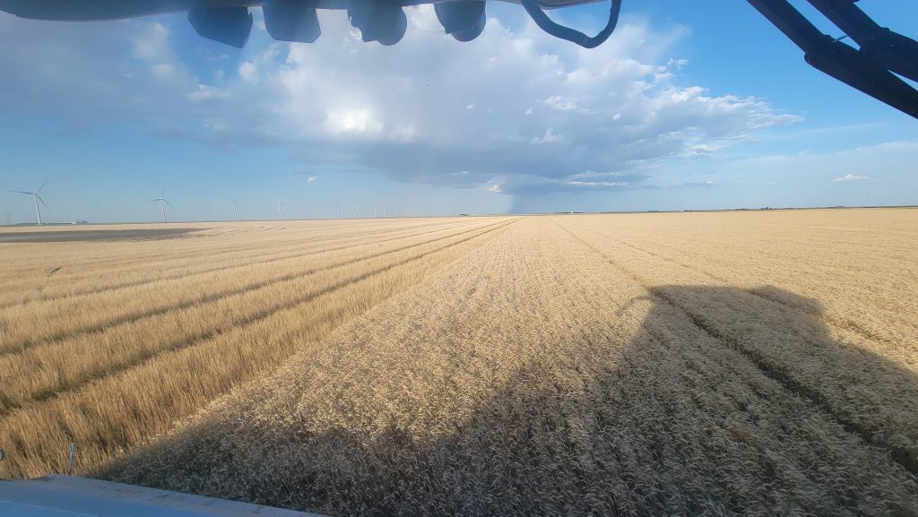 Western Kansas – We made it out to western Kansas yesterday, on June 25th and we are right on time! We had a good trip and went straight to the field. The good hot days are here, and we are busy harvesting a very nice wheat crop. The dryland is high yielding, but the test weights have been lower. The crop had freeze damage in April.