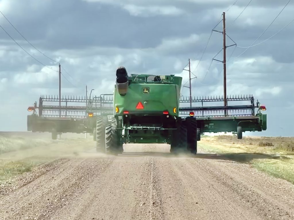 With Nebraska a no-go, the crew headed towards WaKeeney, Kansas (an area that had seen numerous rain delays during harvest), but unfortunately nothing materialized for us there. As we planned our next move, we discovered a discouraging amount of detours. Road construction seemed to plague every major road north, especially our normal route to South Dakota. A new travel itinerary might sound adventurous, but it’s less so when you’re pulling a wide load on a 102 degree day up steep inclines of the desolate Nebraska Sandhills. But the trip went smoothly, and we decided to make a stop in Presho, South Dakota.