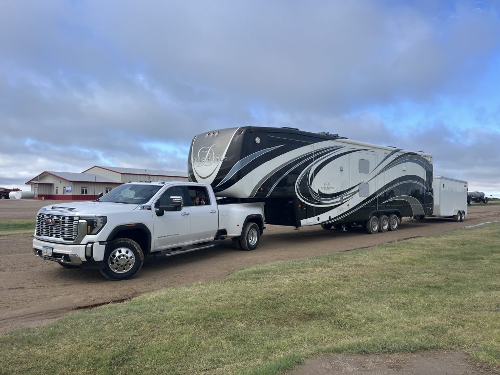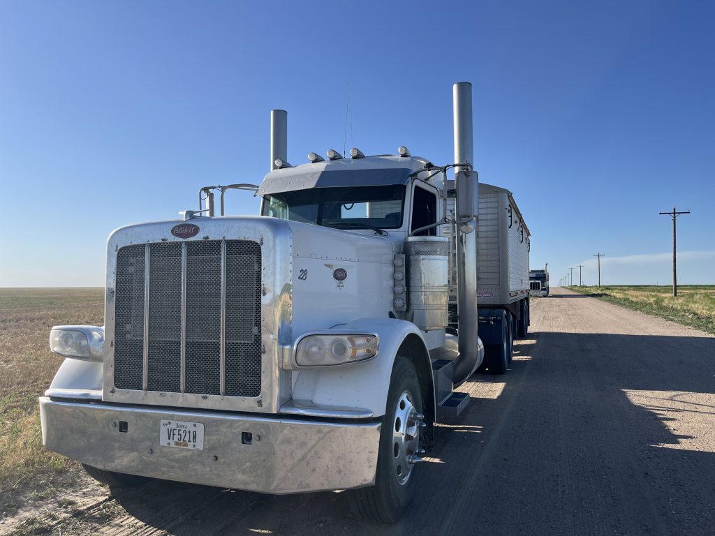 It’s great to be finished up in Kansas, and now we’re ready to make the move to Fort Benton, Montana. I’m sitting here right now all packed up in the campground, ready to take off, but it now looks like we’ll be waiting for a couple hours. Paul has to head all the way to Garden City to get an airbag for the tractor and cart trailer. We were hoping to make it to Bowman, North Dakota today, but with this last minute trip for a fix, I’m not sure how far we’ll get today. Our trip may end up being three days instead of two.