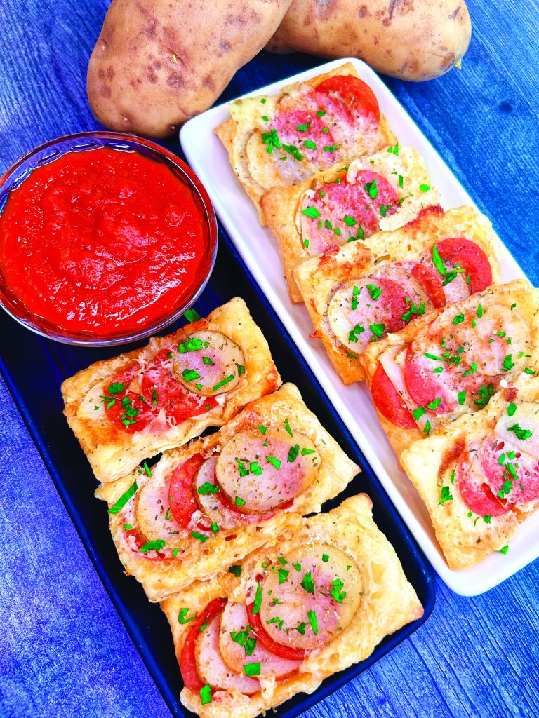 When the school day ends, quick and nutritious snacks can help keep your kids fueled and focused to tackle homework and after-school activities. These Potato Pizza Puffs – a fusion of classic pizza flavors in a convenient, flaky vessel – are baked to golden perfection and served alongside a tangy marinara sauce that easily elevates the snacking experience to new heights.