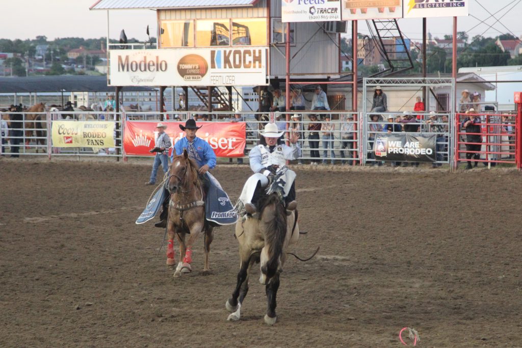 He’s starting to feel comfortable in this position. He competed in steer wrestling during Wednesday’s opener of the Dodge City Roundup Rodeo and began the day with a 4.0-second to sit in second place in the first round. He then stopped the clock in 4.6 seconds, and his two-run cumulative time of 8.6 seconds helped him to the top spot.