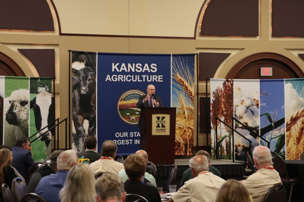 Attendees also heard comments from Marshall Stewart, K-State executive vice president for external engagement and chief of staff, who offered updates on the K-State ag innovation initiative, and from Jackie McClaskey, president and CEO of the American Royal, who gave a current status report on the new American Royal project.