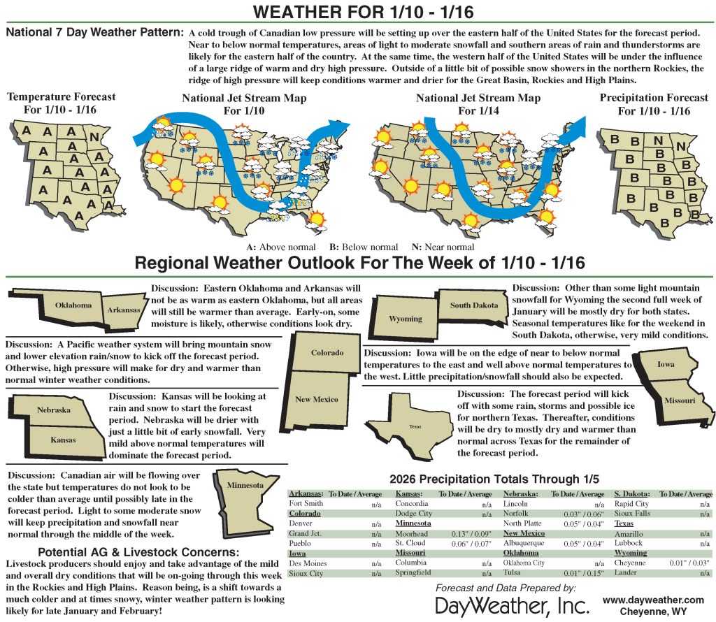 Nearly the entire region was dry. Temperatures were above normal across most areas, with portions of the Texas and Oklahoma panhandles running more than 12 degrees above normal.