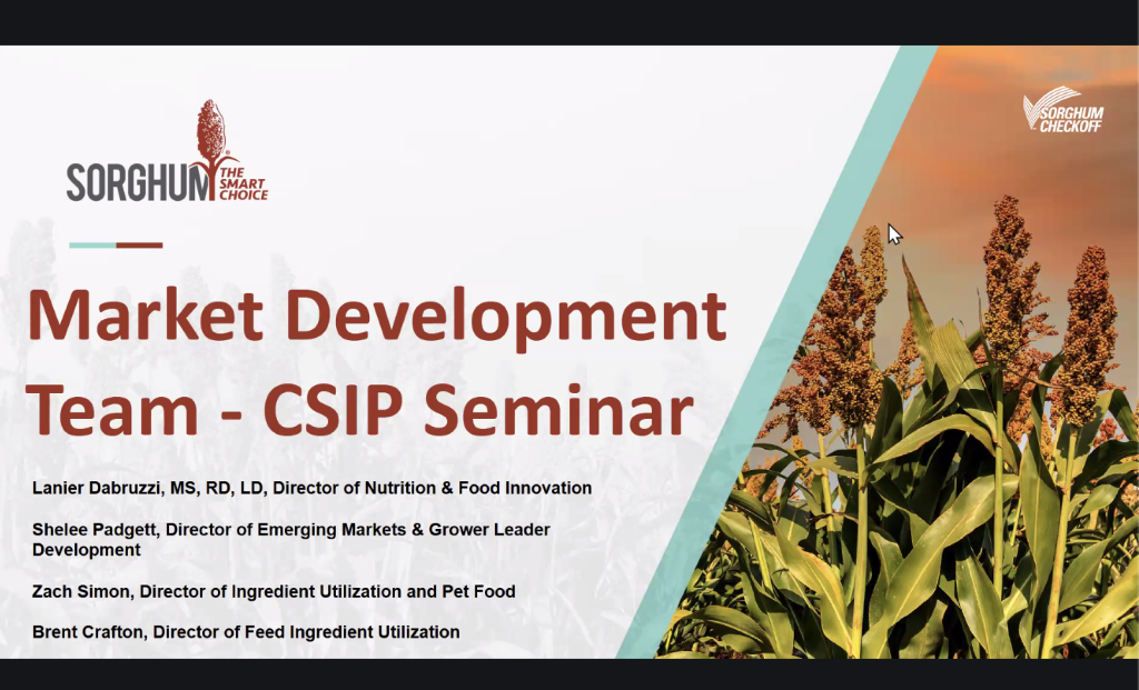 Members of the United Sorghum Checkoff Program marketing team shared their thoughts on subjects ranging from food innovation to feed ingredient usage in the United States as well as emerging markets and market development for the crop during an online seminar Jan. 13. The event was hosted by the Center for Sorghum Improvement.