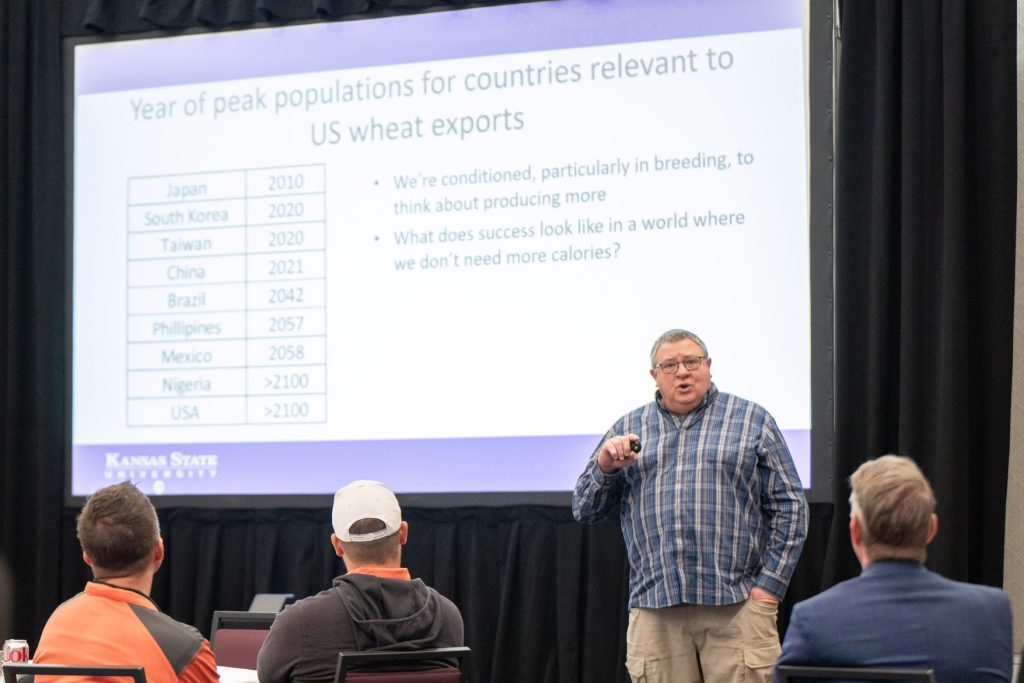Allan Fritz, wheat breeder at Kansas State University, talked about population trends around the world and the potential for growers to capture more value from their crop while speaking at the annual meeting of Oklahoma Genetics, Inc. (Photos provided by OGI.)