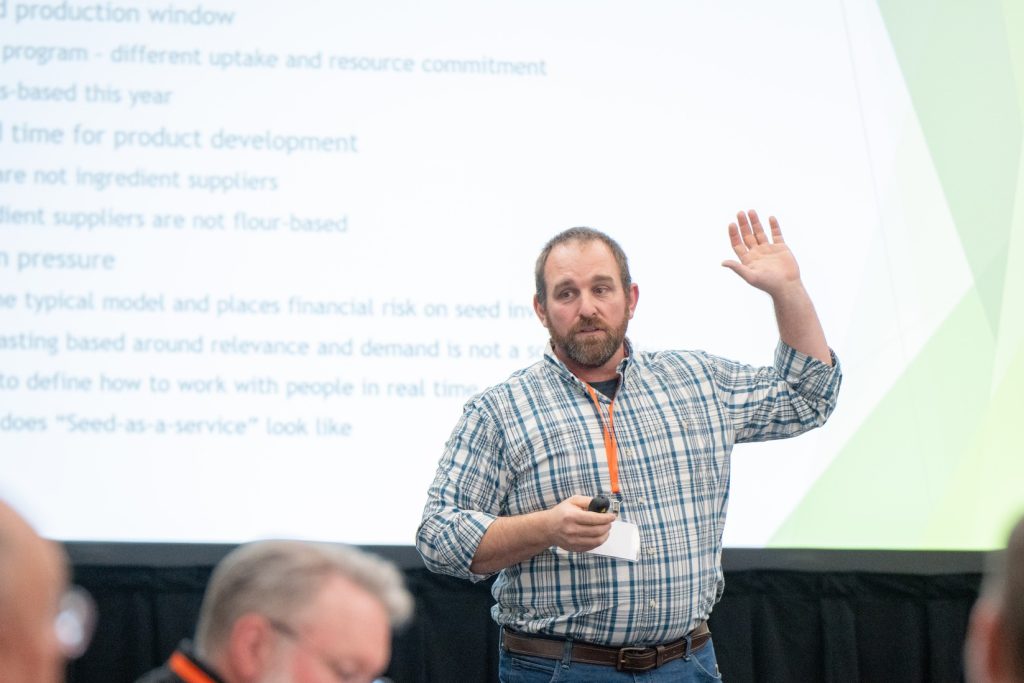 Andrew Hoelscher, president of market consulting firm Farm Strategy, shared some of the challenges involved in building out a dedicated supply chain for “Ox” varieties Breadbox, Firebox and Paradox. “Industry uptake on this has been good,” he said. “Today we’ve got a warehouse of flour available, so if someone wants some, we can ship it to them.” (Photos provided by OGI.)