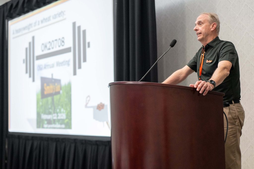 Brett Carver, chief geneticist and director of the wheat improvement team at Oklahoma State University, released a new variety, Wyatt, during OGI’s annual business meeting. The high performing variety with good straw strength is widely adapted across the Central Plains. (Photos provided by OGI.)