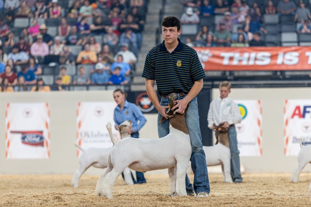 Jase Sparks, Hartshorne FFA, exhibited the grand champion market goat, which was from division 5. Reserve goat was from Division 2 and went to Taylor Glover, Elgin FFA. The bronze champion was from Division 4 and was shown by Addley Hanson, Waynoka FFA.