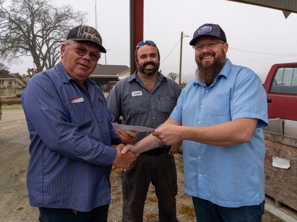 Creekside Carbon payment recipient Darwin Leggette, Chad Leggette and Creekside Carbon co-founder Josh McClain. (Photo by Ben Clark.)