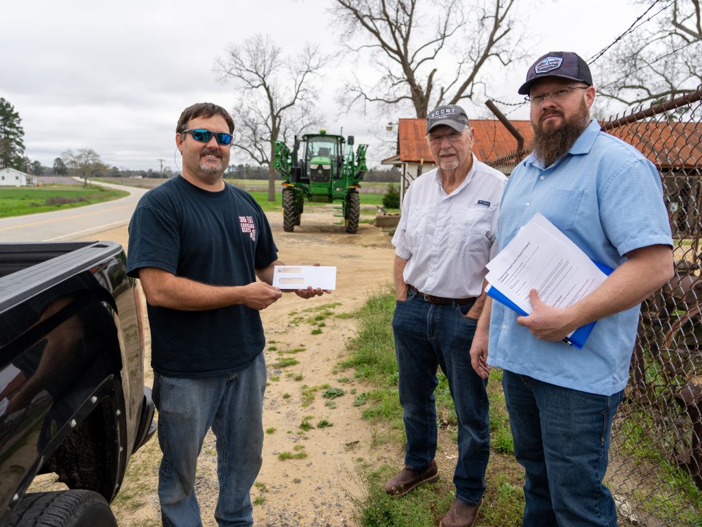 Creekside Carbon payment recipient McNeil Hinson, Doug Newton and Creekside Carbon co-founder Josh McClain. (Photo by Ben Clark.)