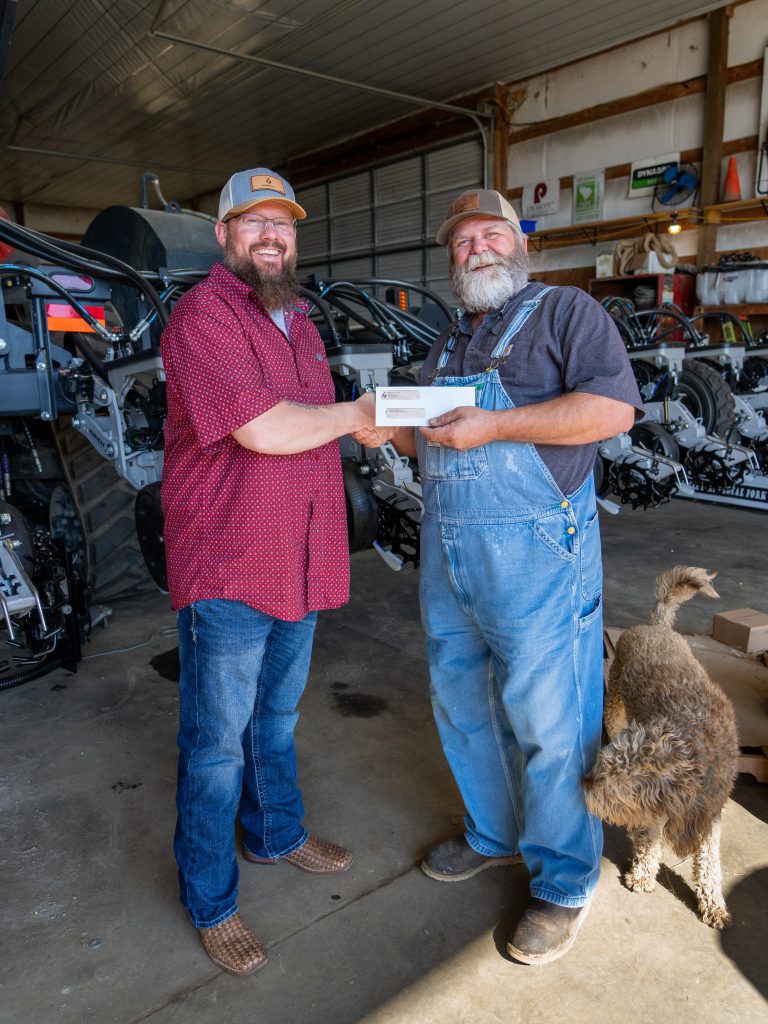 Creekside Carbon payment recipient Dusty Williams and Creekside Carbon co-founder Josh McClain. (Photo by Ben Clark.)